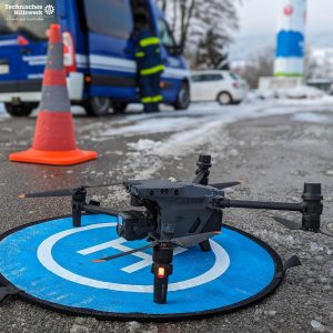 Auf Anforderung vom Landratsamt Oberallgäu wurden während der Traktoren-Demonstration Erkundungen an Verkehrskontenpunkten mittels Drohne durchgeführt.