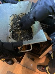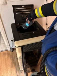 Der Vorratsbehälter einer Pelletsheizung in einer Wohnung fing Feuer und verrauchte die Wohnung. Wir belüfteten die betroffenen Wohnung und kontrollierten den Bereich mit unseren Meßgeräten. Die verkohlten Pelltes wurden nach Rücksprache mit dem Kaminkehrer ins Freie verbracht und vollständig abgelöscht.