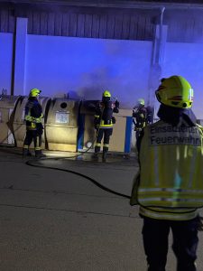 Vollbrand eines größeres Altpapiercontainers, durch einen Trupp unter Atemschutz mit Schnellangriff abgelöscht.