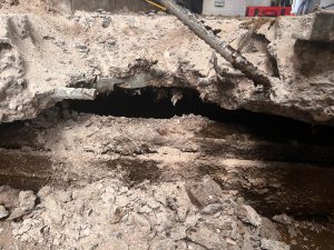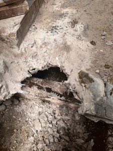 Auf einem landwirtschaftlichen Betrieb wurde eine Person mit dem Fuß zwischen einer massiven Betonplatte und einem sogenannten Mistschieber eingeklemmt. Alle Versuche den Fuß mittels hydraulischer Winden (sog. Büffelheber), sowie Spreizer zu befreien scheiterten. Deshalb musste die Betonplatte in mühevoller Kleinarbeit Stück für Stück zerlegt werden. Nach knapp 2h konnte die Person befreit werden und wurde durch den Rettungsdienst in ein Krankenhaus verbracht.