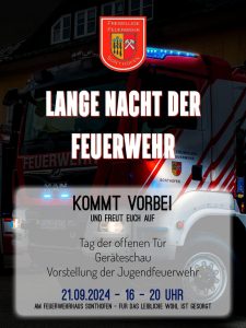 Home Events Lange Nacht der Feuerwehr Lange Nacht der Feuerwehr + Zu Google Kalender hinzufügen + iCal / Outlook export Datum 21 Sep. 2024 Vorbei! Uhrzeit 16:00 - 20:00 Veranstaltungsort Feuerwehrhaus Sonthofen Hirnbeinstr. 1 87527 Sonthofen Veranstalter Feuerwehr Sonthofen Teile diese Veranstaltung